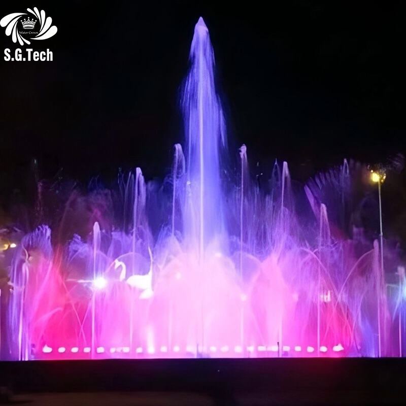 شركة ووتر كراون لتصنيع النوافير الكبيرة الحجم المزودة بإضاءة ملونة وتأثيرات مائية متنوعة وتيارات مائية ديناميكية تتبع بعضها البعض
