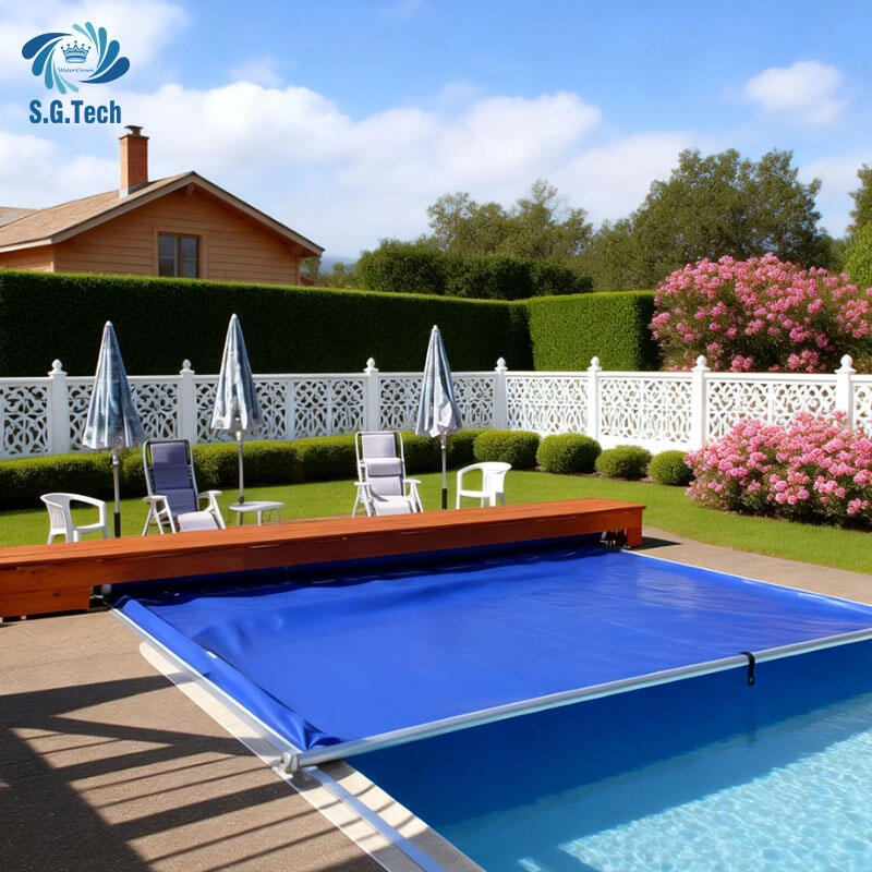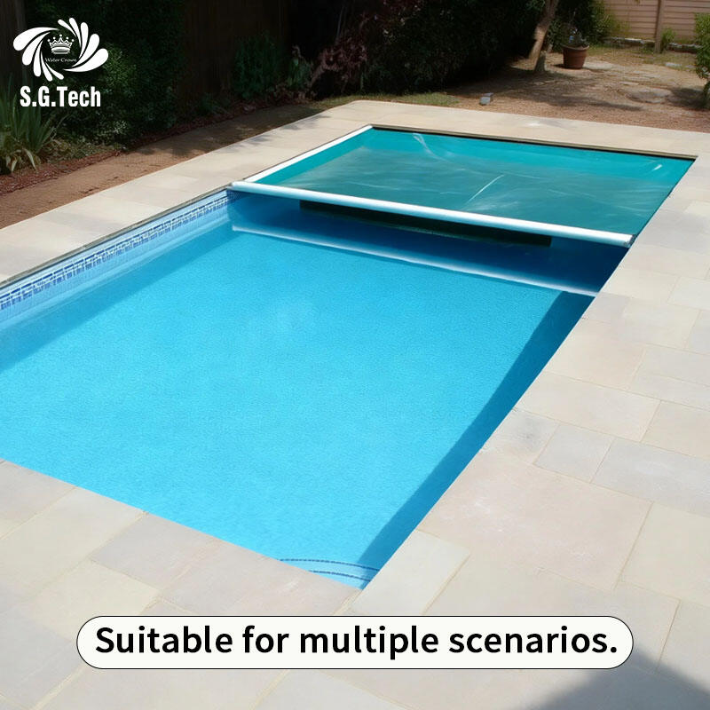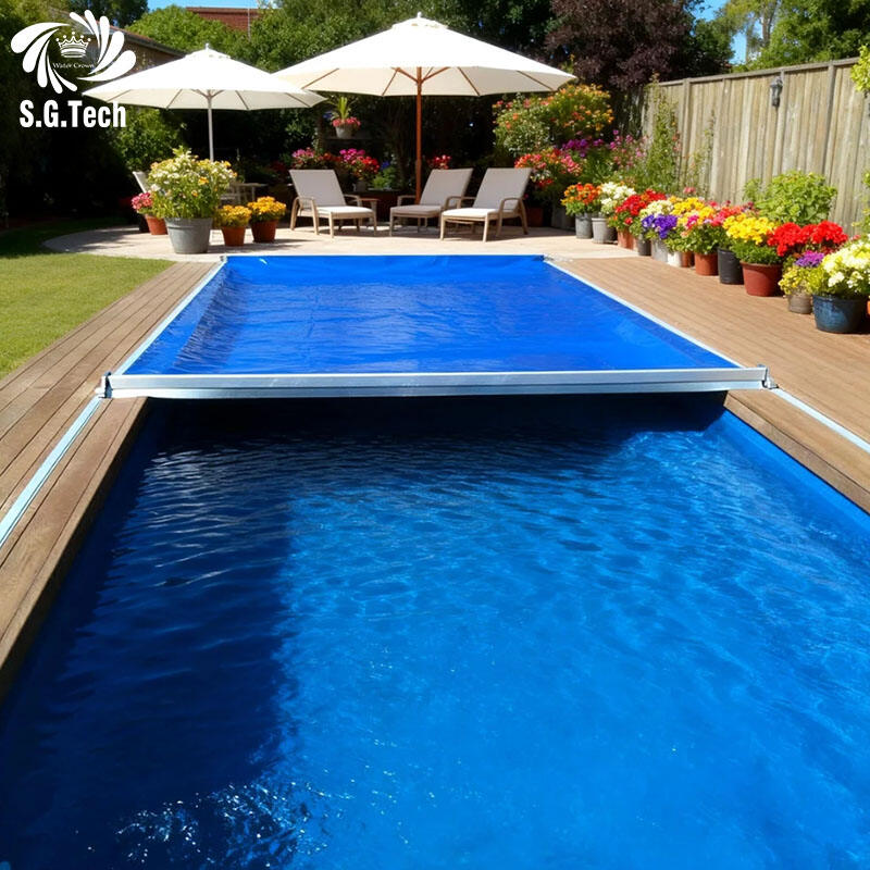 غطاء حمام سباحة كهربائي تلقائي خارجي من علامة Water Crown للاستخدام في الأماكن المفتوحة، يوفّر سلامةً للسبا والمسبح فوق الأرض المخصّص للبالغين والأطفال، مصنوع من مادة البولي كربونات (PC)