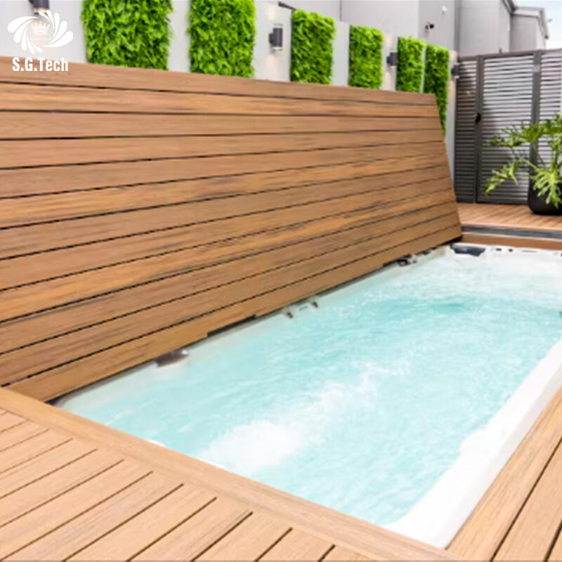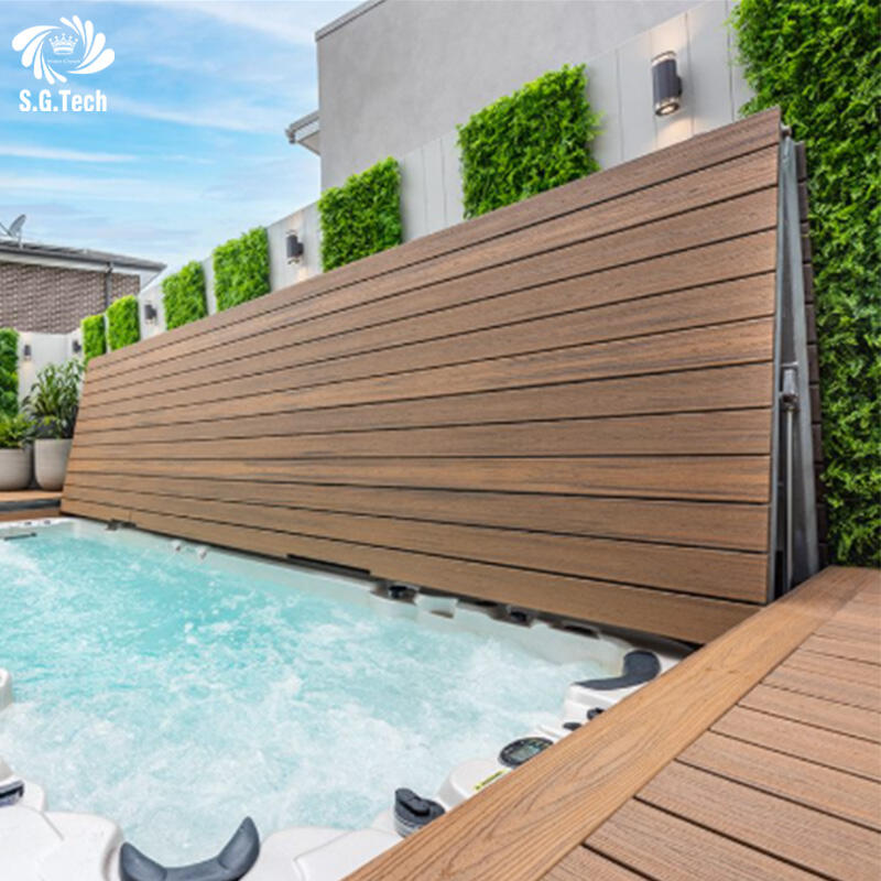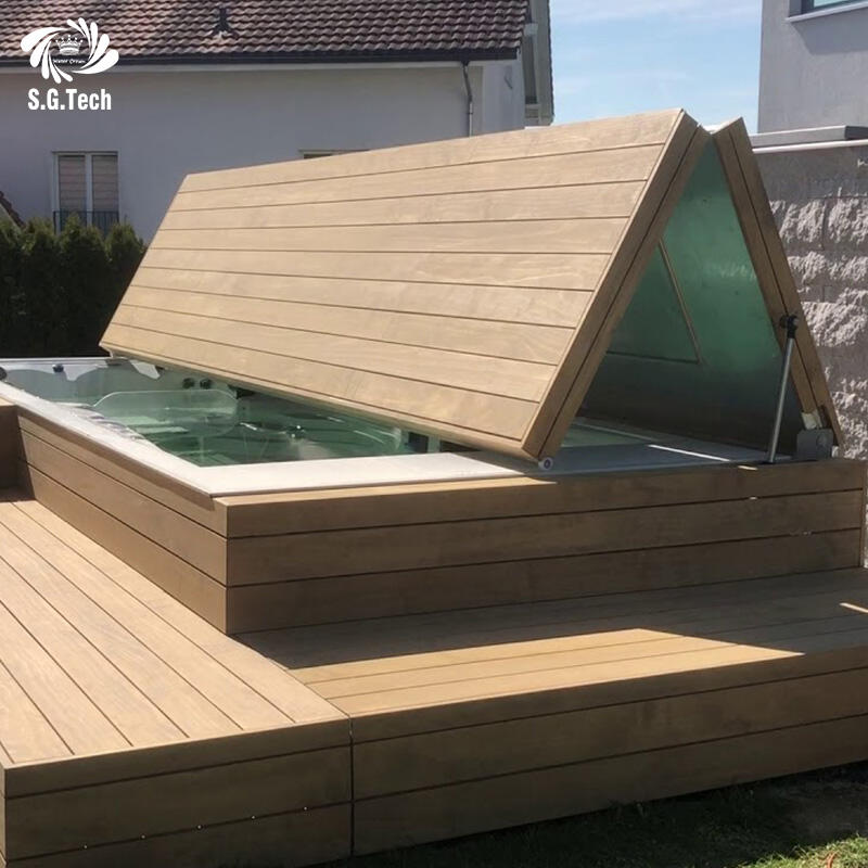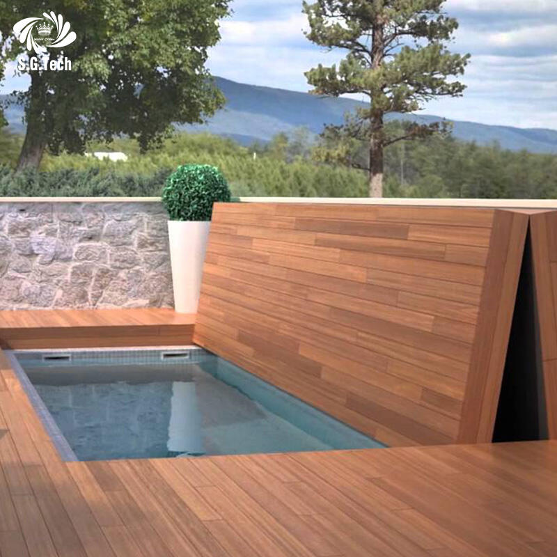 Water Crown muokattava huippuluokan taittava altaan peite ruostumaton teräs puurakenne altaan peite