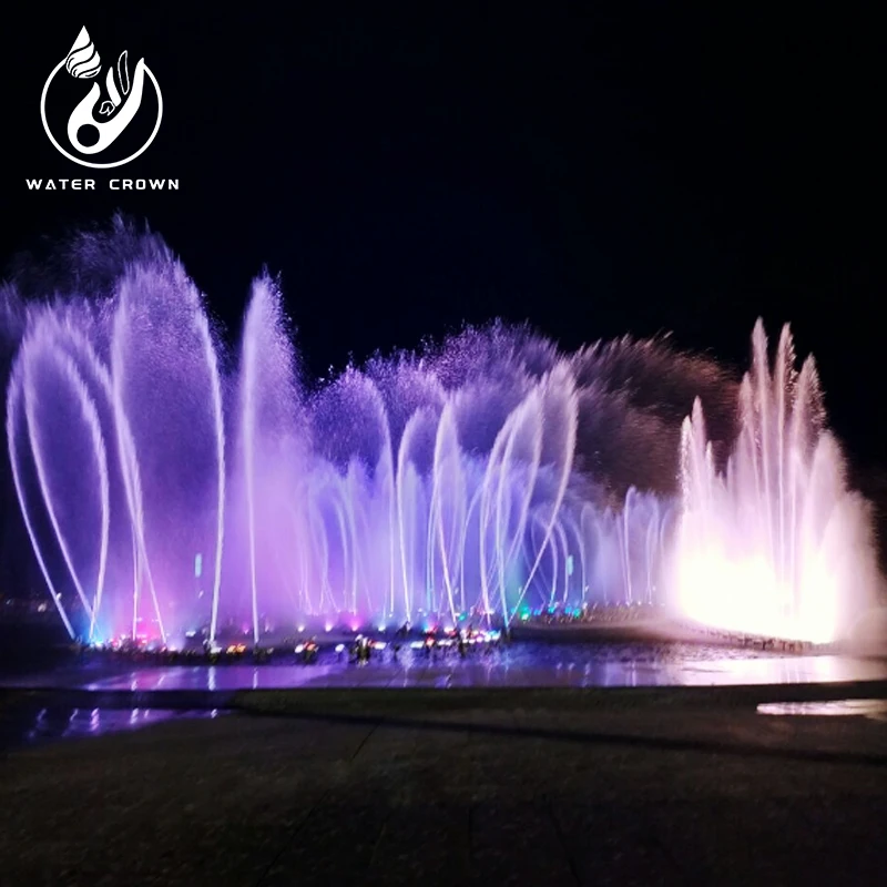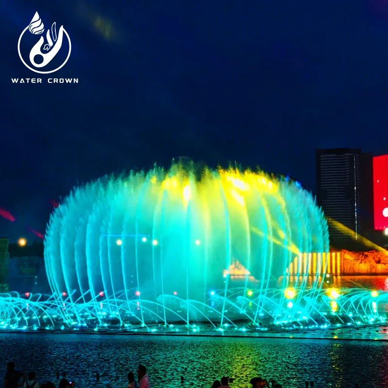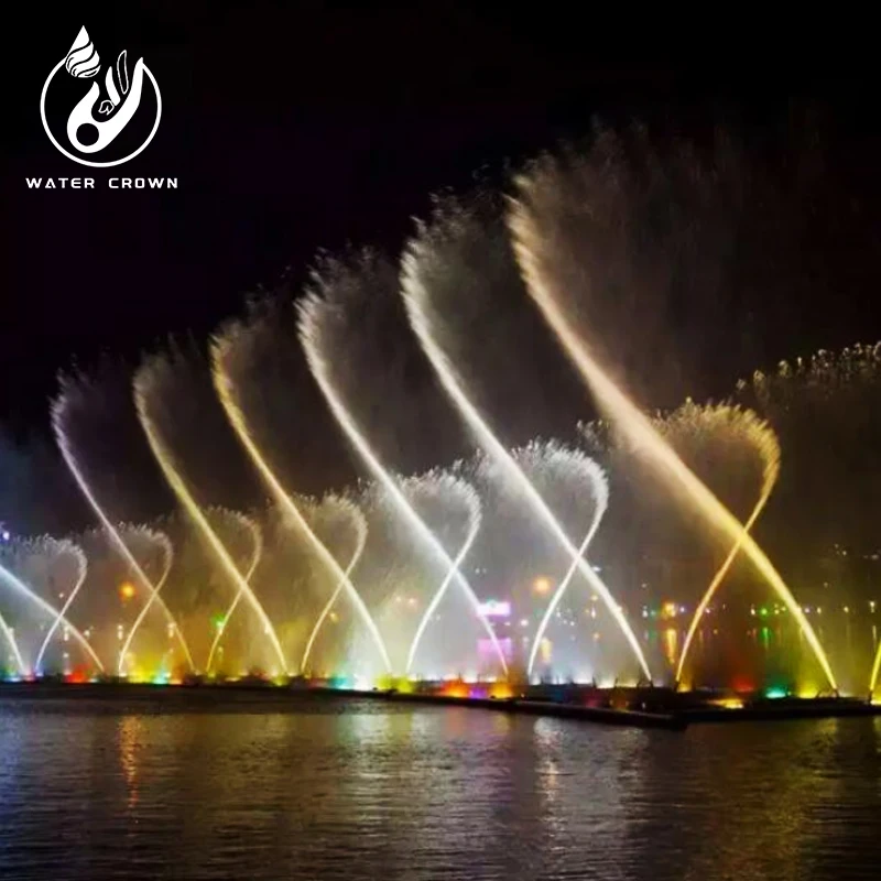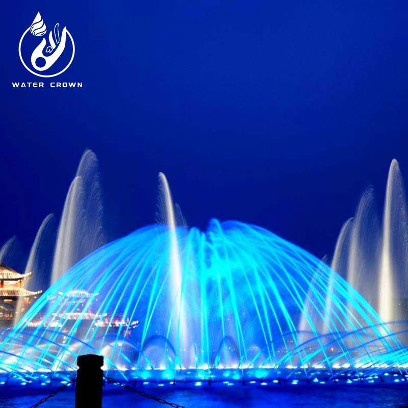 Fontaine musicale et dansante moderne haute qualité, vente directe usine Water Crown, en acier inoxydable 304 argenté, dimensions personnalisables, usage extérieur