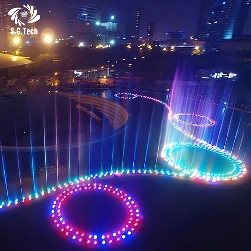 대형 야외용 플로팅 댄싱 분수를 위한 맞춤형 사이즈 스틸 뮤직 분수 장식, 워터 크라운 디자인
