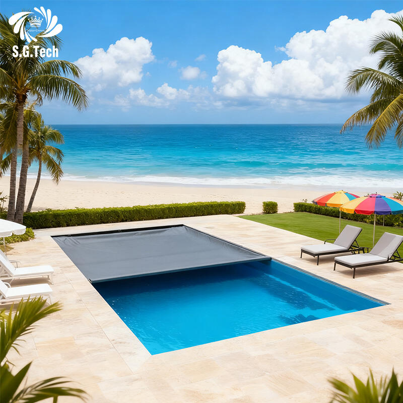Bạt che an toàn hồ bơi PVC tự động theo yêu cầu từ nhà máy, chống thấm và chống bụi, phù hợp với các hồ bơi có hình dạng không đều